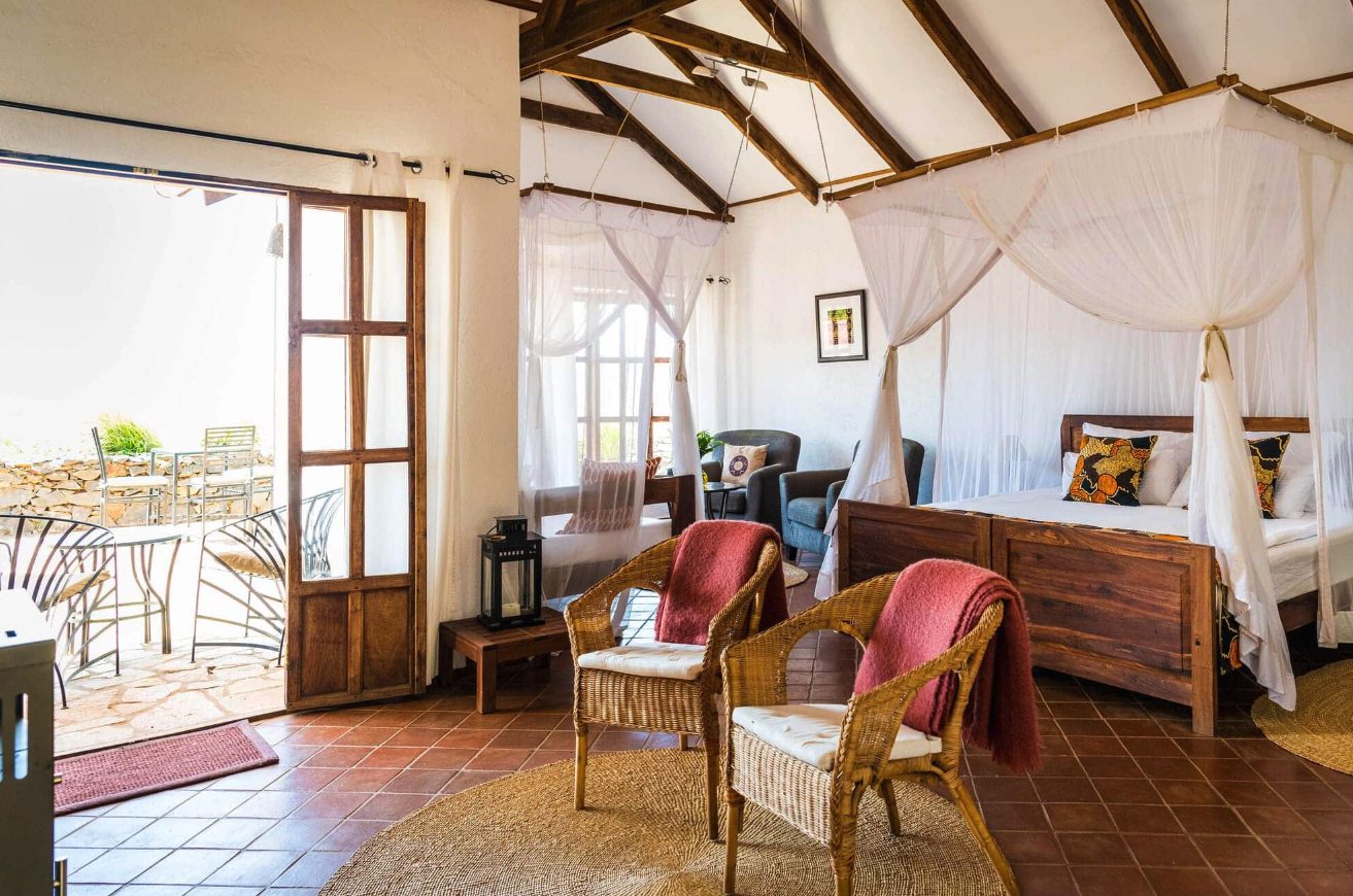 L’établissement possède 22 chambres contemporaines teintées d’influences africaines.