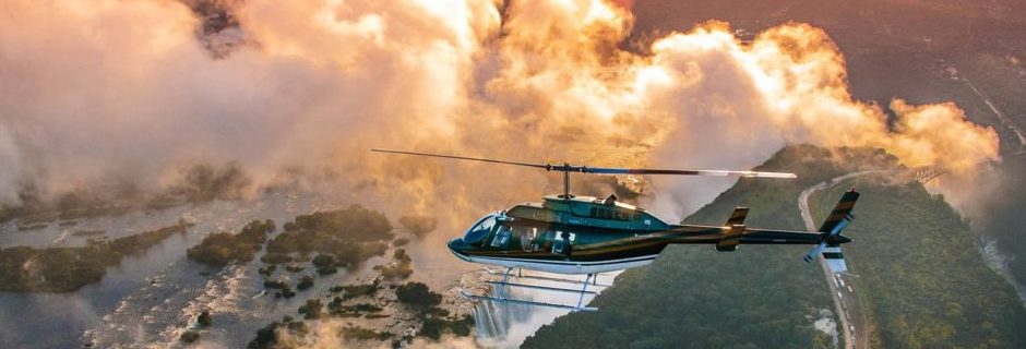 Survol de 12 minutes des chutes en hélicoptère * en option (avion si non disponible). Une expérience inoubliable qui vous permettra de survoler la faille qui, suite à un mouvement de terrain, créa les chutes et les gorges du Zambèze.
